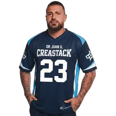 Nuestra camiseta CreaStack Cyan está diseñada para mejorar tu rendimiento deportivo con un diseño moderno y personalizable con tu nombre y número preferido.
